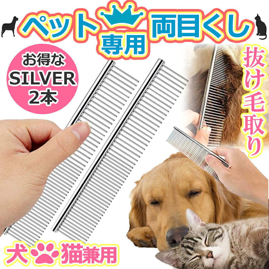 【全商品ポイント5倍】 ペット コーム シルバー 2本 セット 両目 くし ステンレス 細目 粗目 犬 猫 ウサギ トリミング 毛 抜け毛 取り もつれ毛 ほぐす 猫 ブラシ グルーミング ペット 用品 毛並み 整える 毛繕い 安全 2-NECORM-SV TOKU 送料無料 CM