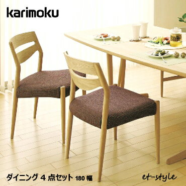 カリモク ダイニング 4点セット CU71 肘なし チェア×2 U26 布 3人掛椅子 ソファ U26 布 1800無垢テーブル食堂椅子 ダイニング チェア