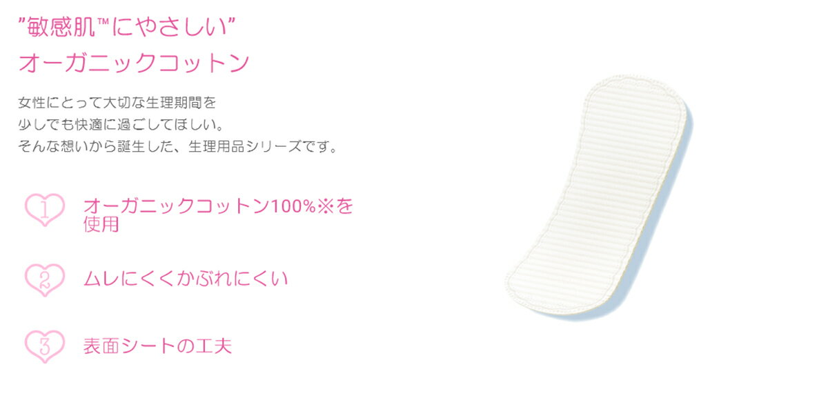 デリケートゾーンが触れる上層にオーガニックコットン100%を使用しているから、自然で優しい肌ざわり。