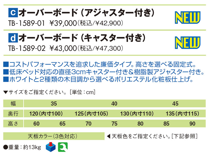 TB-1589-01 オーバーボード(アジャスター付き) コストパフォーマンスを追求した廉価タイプ。