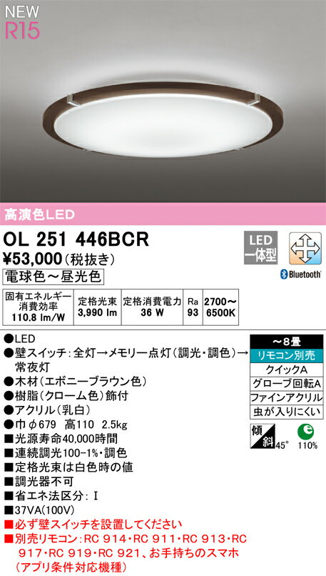 ●商品の関連商品や機能説明などPC用ページに切り替えてご確認下さい [ 人気 商品 検索 画面 はこちらから ] ●関連商品 調光調色シーリングライトOL251119R 木材エボニーブラウン色 高演色LED 電球色〜昼光色ツバ付丸形引掛シーリング取付 リモコン付属〜14畳39,820円調光調色シーリングライトOL251445R 木材エボニーブラウン色 高演色LED 電球色〜昼光色ツバ付丸形引掛シーリング取付 リモコン付属〜12畳35,310円調光調色シーリングライトOL251120R 木材エボニーブラウン色 高演色LED 電球色〜昼光色ツバ付丸形引掛シーリング取付 リモコン付属〜10畳32,670円調光調色シーリングライトOL251446R 木材エボニーブラウン色 高演色LED 電球色〜昼光色ツバ付丸形引掛シーリング取付 リモコン付属〜8畳29,920円調光調色シーリングライトOL251119BCR 木材エボニーブラウン色 高演色LED 電球色〜昼光色ツバ付丸形引掛シーリング取付 Bluetooth対応機種〜14畳39,270円 調光調色シーリングライトOL251445BCR 木材エボニーブラウン色 高演色LED 電球色〜昼光色ツバ付丸形引掛シーリング取付 Bluetooth対応機種〜12畳34,760円調光調色シーリングライトOL251120BCR 木材エボニーブラウン色 高演色LED 電球色〜昼光色ツバ付丸形引掛シーリング取付 Bluetooth対応機種〜10畳32,120円調光調色シーリングライトOL251446BCR 木材エボニーブラウン色 高演色LED 電球色〜昼光色ツバ付丸形引掛シーリング取付 Bluetooth対応機種〜8畳29,370円