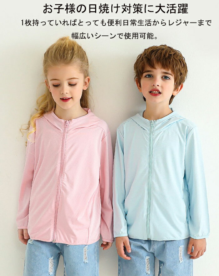 ラッシュガード キッズ 男の子 女の子 トップス カジュアル シンプル スポーティー UVカット パーカー 子供 長袖 紫外線対策 日焼け防止 冷房対策 夏用 冷感 ひんやり 男女兼用 カップル 体型カバー 冷感 速乾 紫外線 汗対策 自転車 通勤 プール 旅行 海 春夏 バイク 夏場