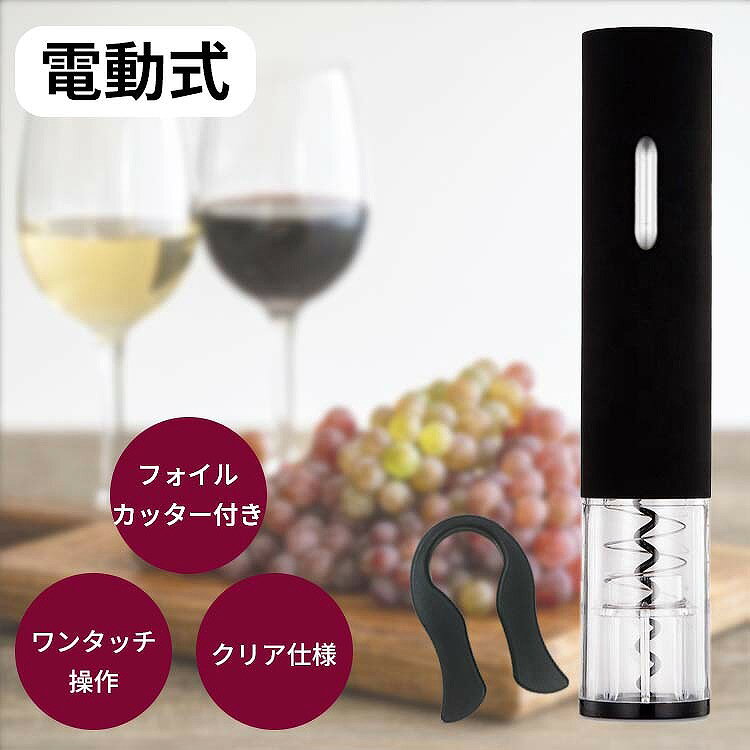 ワインオープナー 電動 電動ワインオープナー フォイルカッター付き 自動 力いらず 簡単 電池式 乾電池式 キッチン キッチン家電 電動式ワインオープナー コルク抜き 栓抜き ボトルオープナー ワイン コルク ボジョレー 【送料無料】 詳しく見る