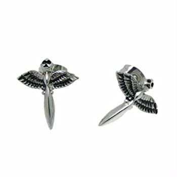 【中古】【輸入品・未使用】Sweetie 8ホワイトAngel WingsスタイルメンズユニセックスステンレススチールCZスタッドイヤリング、2ピース