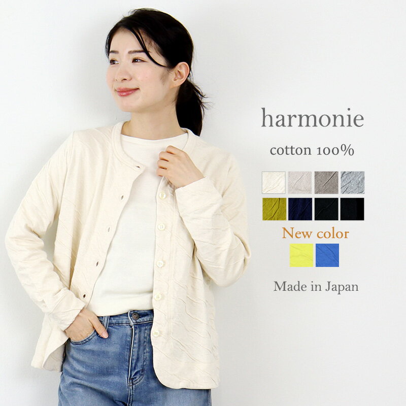 【スーパーセール期間ポイント10倍】カーディガン レディース 綿harmonie ( アルモニ )もこもこ接結・裾ラウンド 無地 カーディガン6590145 日本製コットン100% 厚手 長袖 春 秋 冬 ラッピング対応【あす楽・送料無料】